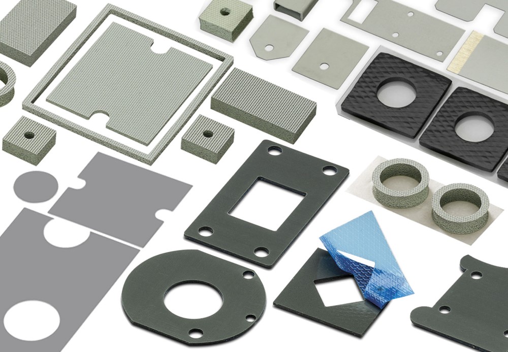 Including Silicon rubber insulating material for semiconductors, Thermally conductive foil manufactured from siliconelastomer, Silicone-free thermal conductive foils, High thermoconducting graphite foils, Thermal conductive foil one sided adhesive, Heat conductive foam foils, Kapton insulator washers, Mica wafers, Aluminium oxide wafers, Thermal conductive paste and thermal interface film, Fixing material for mechanical components, Mounting material for single semiconductors and Heatsinks.